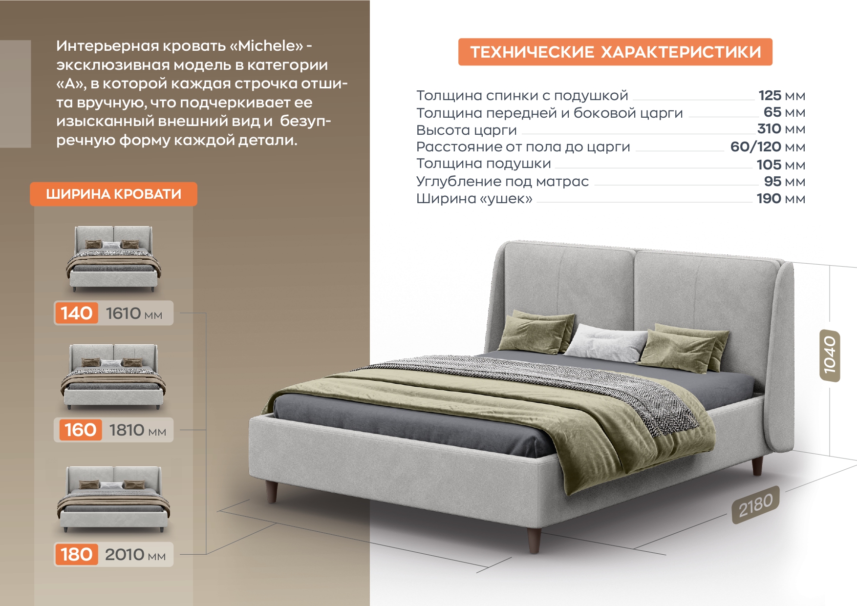 160 x 200: 1810 х 2180 х 1040